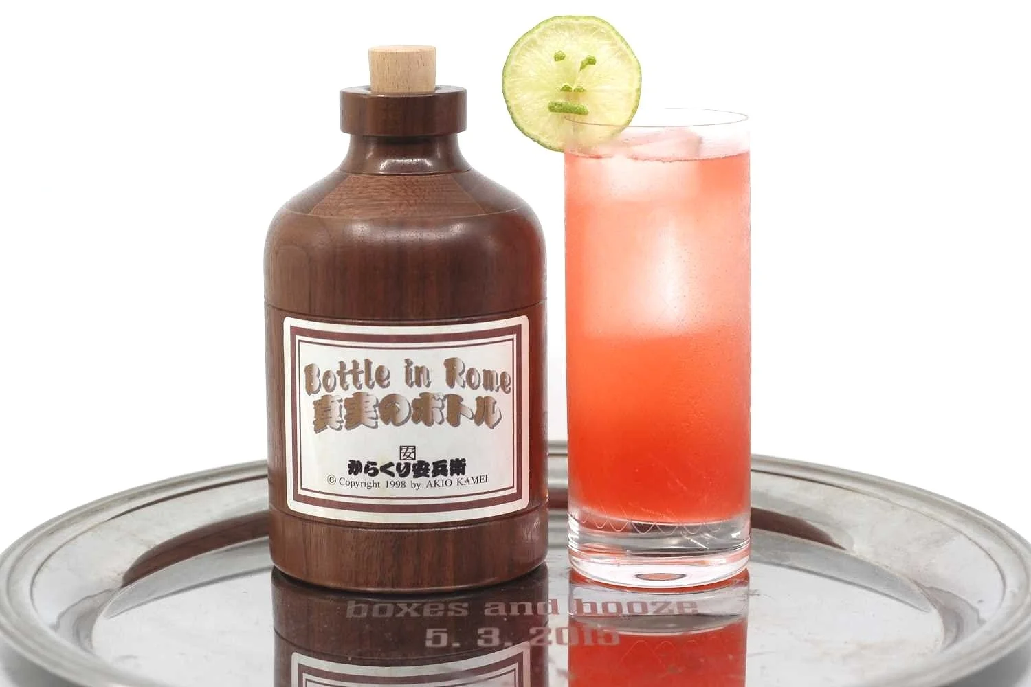 The idea tickled future Karakuri Creation Group founder Akio Kamei, whose early puzzle box work is full of humor, human nature and common logic applied to the opening solutions of his pieces. At first, he envisioned a “Box in Rome”, based on this scene from the movie Roman Holiday, but later combined the idea with another he had about bottles, and created his famous “Bottle in Rome”.