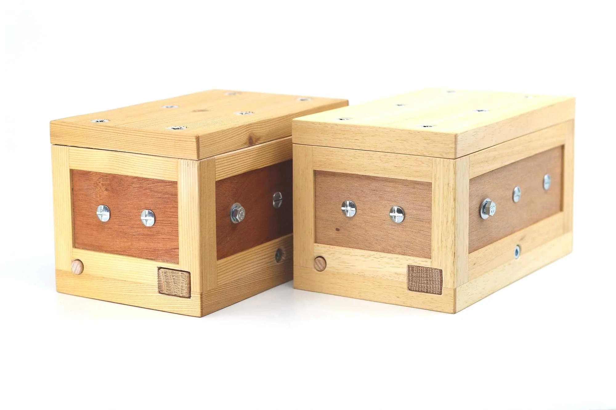 Doog manufactures his puzzles in his tiny workshop set in the French Alps. Many have seen the photo of this idyllic little cabin, and marvel at what he can accomplish with such a small footprint. Of course Doog purposefully keeps his production runs small and tidy, and plans efficiencies as much as he possibly can. It helps keep him content while making these fantastic boxes, balancing productivity and cost with enjoyment and creativity. His parallel collaboration with Czech designer Radek Micopulos is also going well.