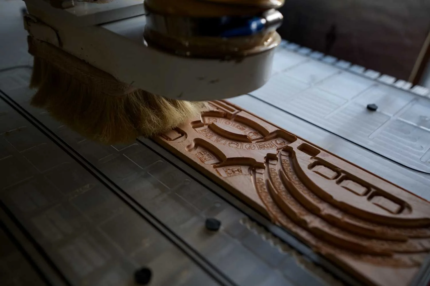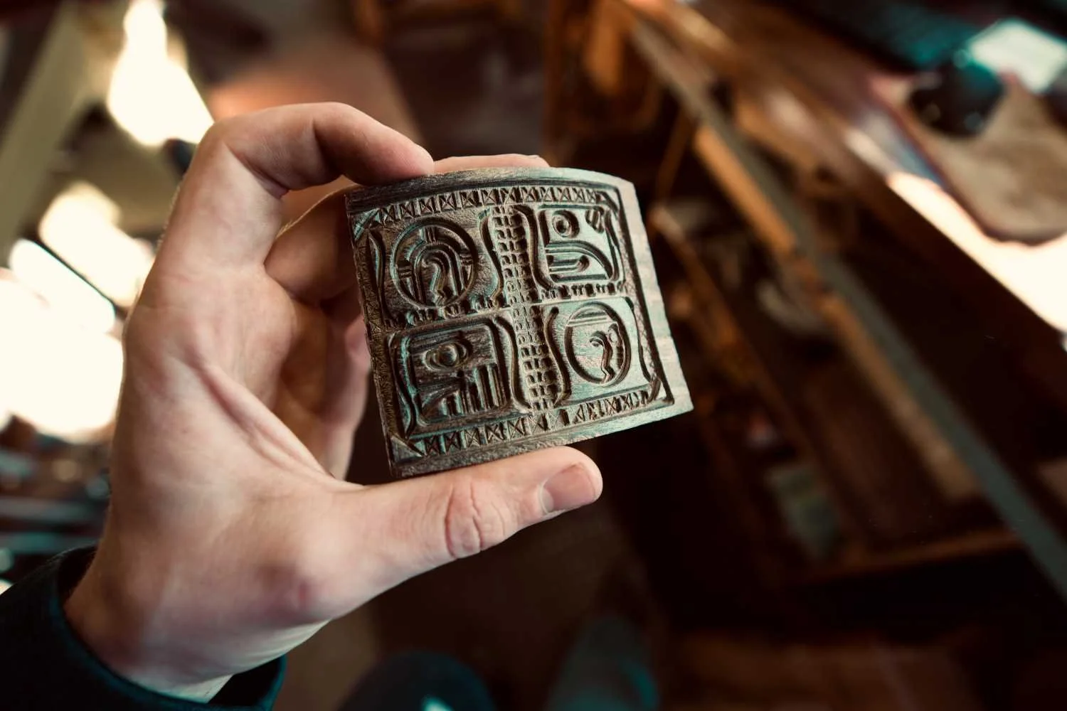 Jesse also used every piece of equipment in his shop, and learned so many new skills to create this piece: “how to use Fusion360 to cut cylinders/use the 4th axis, how to sketch on a curved surface, how to use a t-slot cutter or a dovetail bit on the CNC, how to use the Boss laser to engrave and make tiny perimeter cuts on the SunDial components, how to 3d print, assemble a Prusa printer, custom-tailor the fusion360 post-processor to my specific machining needs … [how to] use aluminum oxide in a tumbler to polish parts and sand edges, use vacuum bag to clamp 9 sheets of veneer into a single curved panel to be used for the SunDial wall”, just to name a few. It was by far his most challenging box to date, taking 750 CAD sketches, fifty prototypes, 130 separate pieces of wood (Katalox and Ipe), steel, brass, leather, and a real citrine jewel, to create. The external glyphs and symbols that cover the box are all quite intentional, well researched and authentic to the era in many instances, sourced and at times designed by Jesse’s friend and production team member Everett. Look closely, and you might just find a few Easter eggs as well, tying the Sundial back to the Sea Chest, and forward to the Alien Box yet to come.