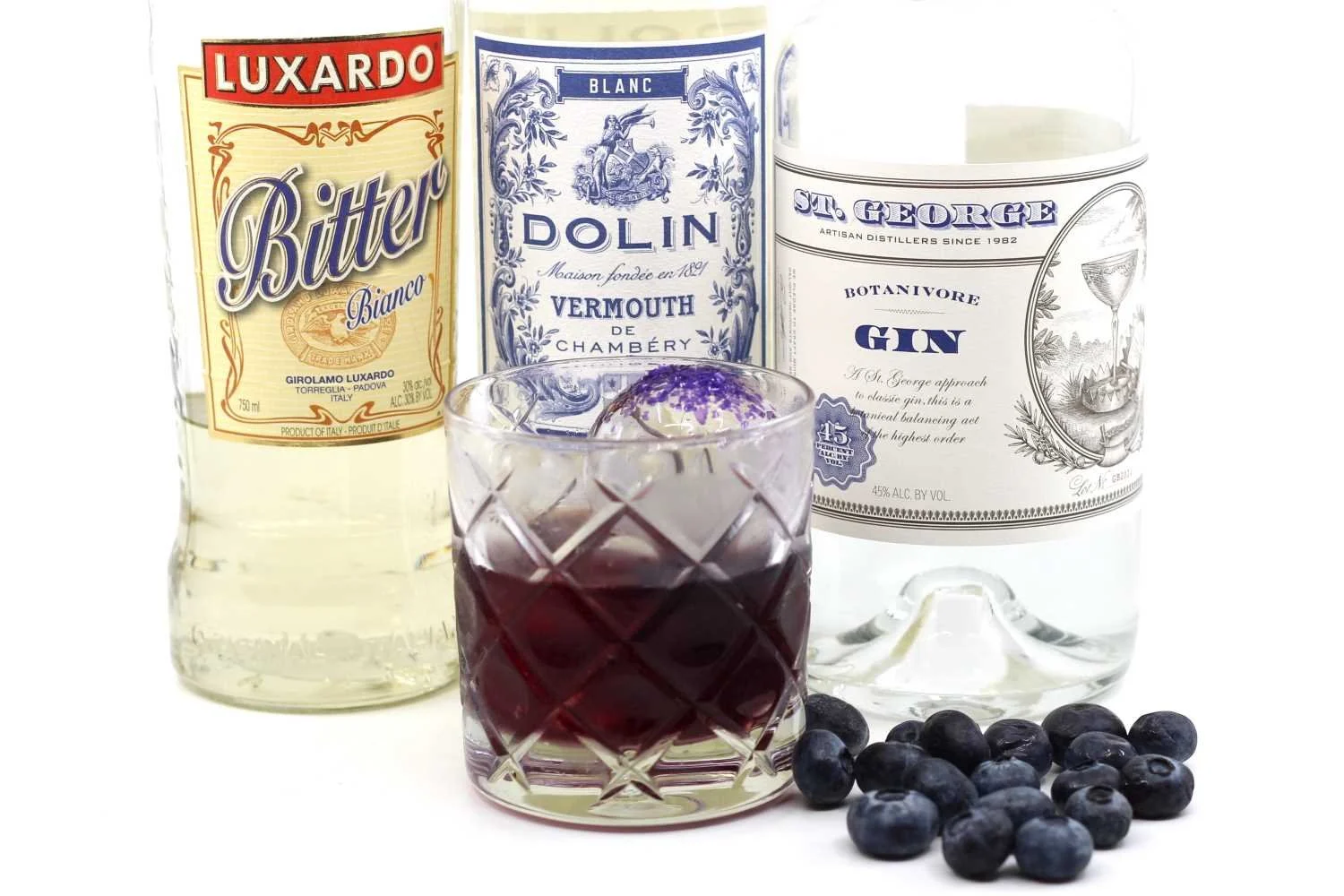 Let’s not forget Charlie Bucket, our hero, who nonetheless sneaks a little ‘Fizzy Lifting Drink” along the tour and almost floats away. A nice gin fizz would have been perfect. But in the end I chose Violet Beauregarde, who holds a world record for chewing gum. She nabs a prototype piece of gum that tastes like a three-course meal: first tomato soup, then roast beef with baked potato, and finally blueberry pie with ice cream. Unfortunately she then turns into a blueberry. Which is lucky for us, because it gave me the chance to make this blueberry Negroni, which I adapted from a recipe created for Empress Gin by Eva Flores. Oompa Loompa!