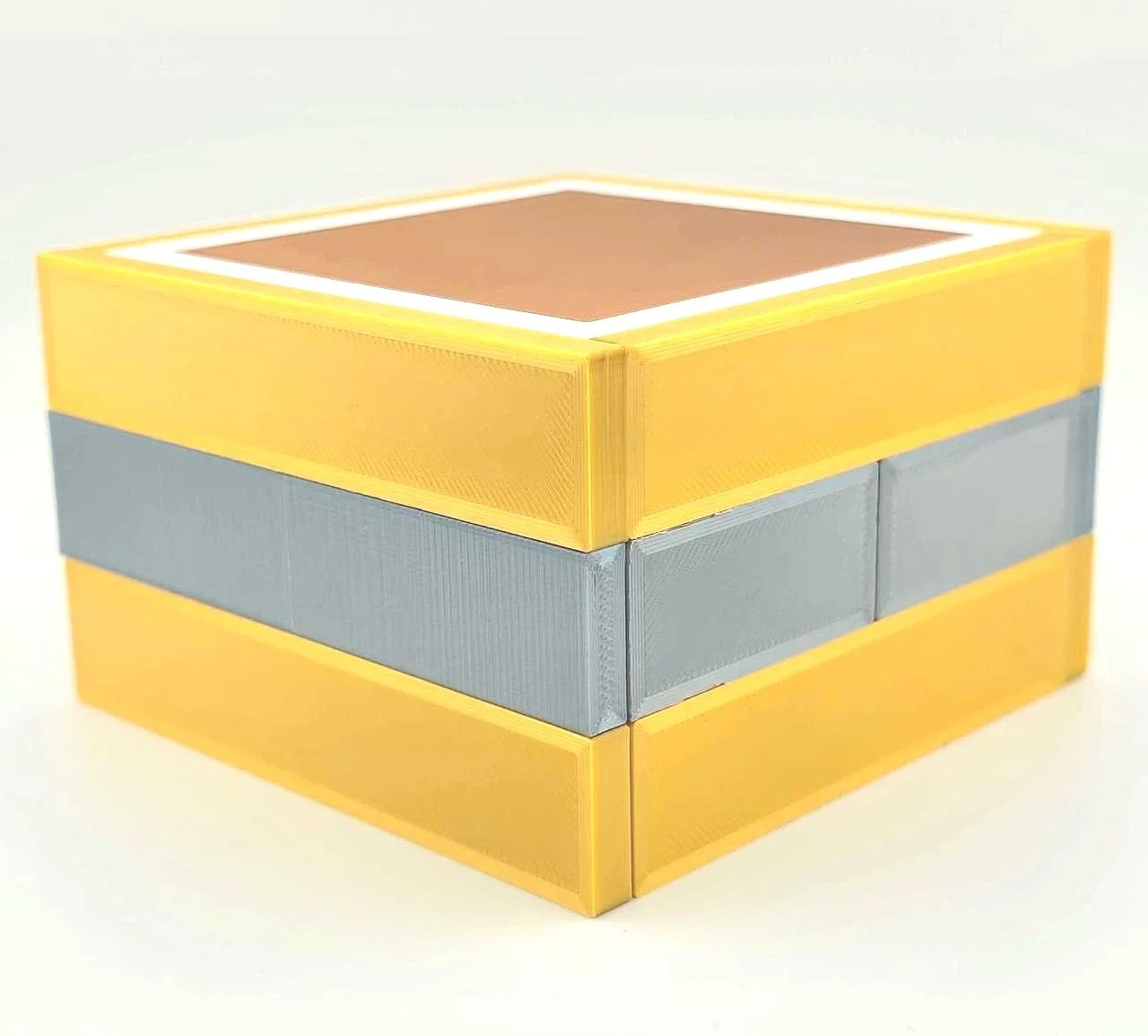 The current iteration of the Piston Box includes design elegance as well. The mazes maximize movements and directional interplay. The cube dimensions now match Lee’s other cubic print, the Barcode Burr. A few elements owe input from Keith Jackson, who would go on to exchange the Piston Box at IPP41. Keith added useful feedback and optimization from a puzzle solving perspective, approaching it from a “sequential discovery” perspective. Keith first saw a prototype of the puzzle in January 2024, and he notes that “the design, especially the exterior, changed a lot from that version to the one I exchanged. I had a lot of interaction with Lee. Still, the final product is something like 97% Lee and 3% me. Maybe the most visible input I had was adding the recesses onto the key plates to make it easier for the puzzler to slide them.”