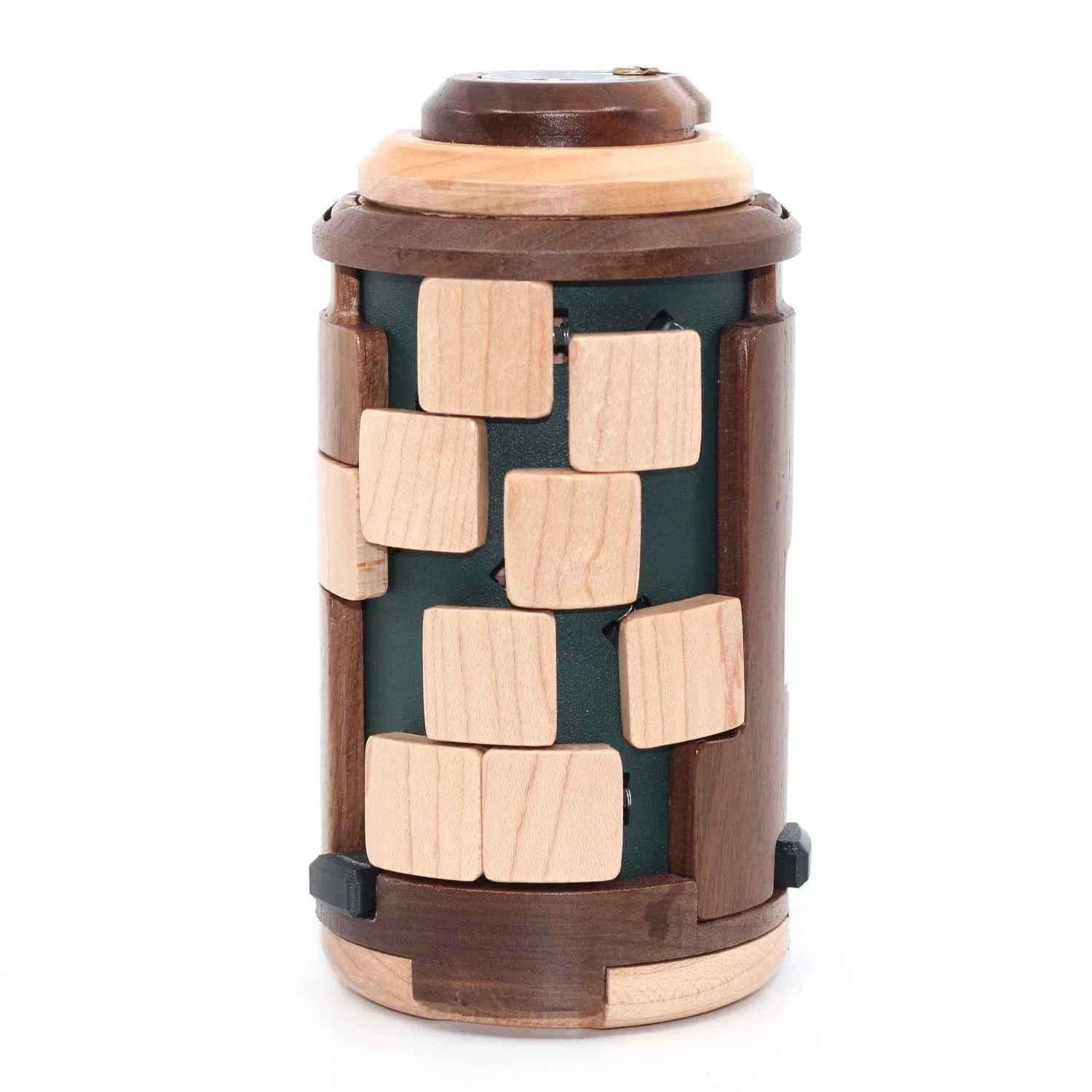 Chronologically speaking, it was built layers at a time. The mechanisms and puzzle on the outside were unknown when I was building the inner cores. It was a joy to move on to the next layer. Luckily, stitching them together in the end went surprisingly well. The next evolution was iterations of testing and increasing its robustness. Lately I’ve perfected the cuts and finishes for speed and beauty.”