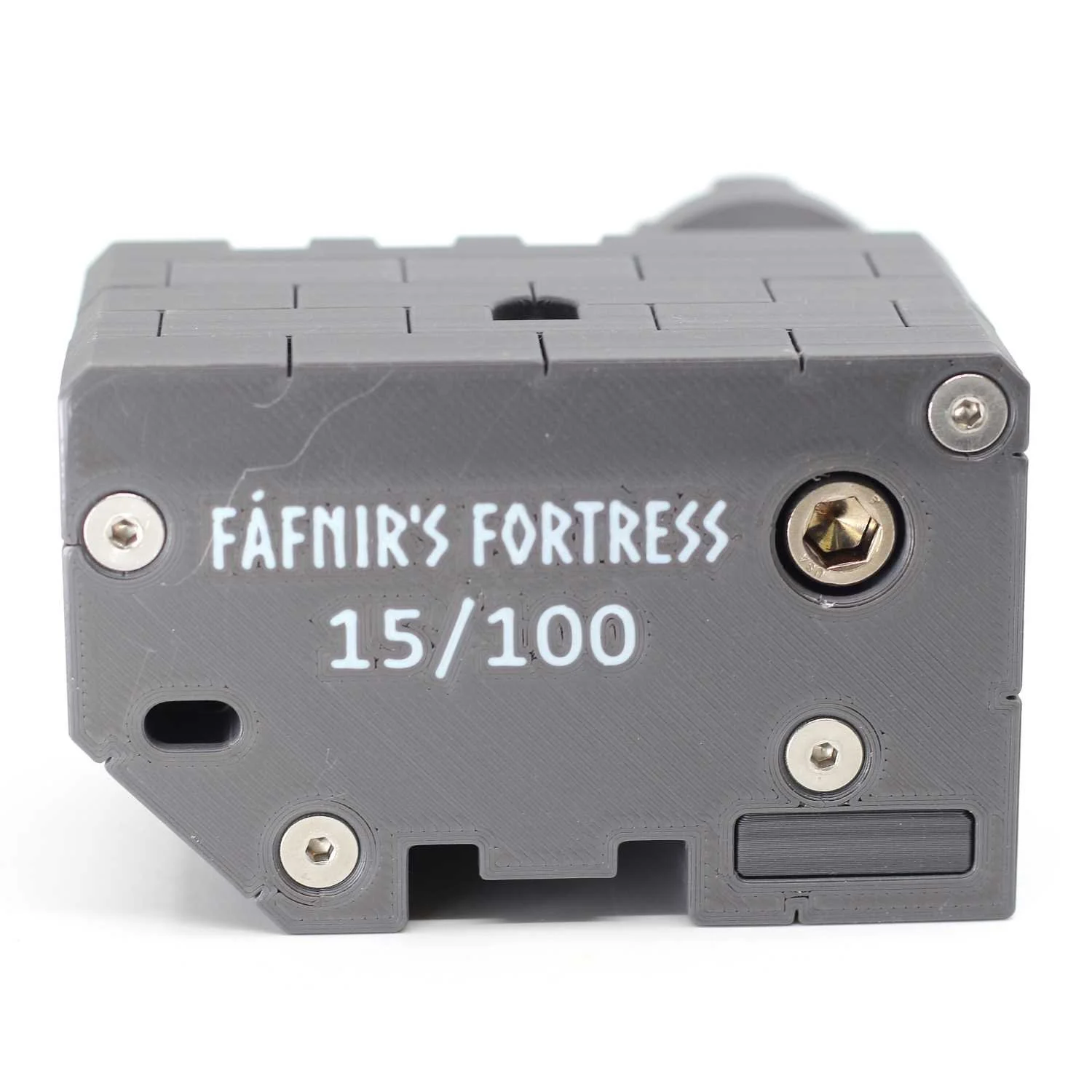 Luke certainly knows what he is talking about. The production value of Fafnir’s Fortress is exceptional as a mixed media machined and printed product. The castle is dense and quite heavy, thanks to Luke’s use of 100% print infill, something not commonly done for prints. The result, though, gives it a very high quality feel. The castle is also rather compact, which makes it easy to handle and manipulate, and which becomes more and more impressive as the many, many layers of the adventure are uncovered. Luke packed the whole story into this tiny castle, in a way that makes many people think that after a decent number of steps, the adventure might be finished, when in fact it has only just begun.