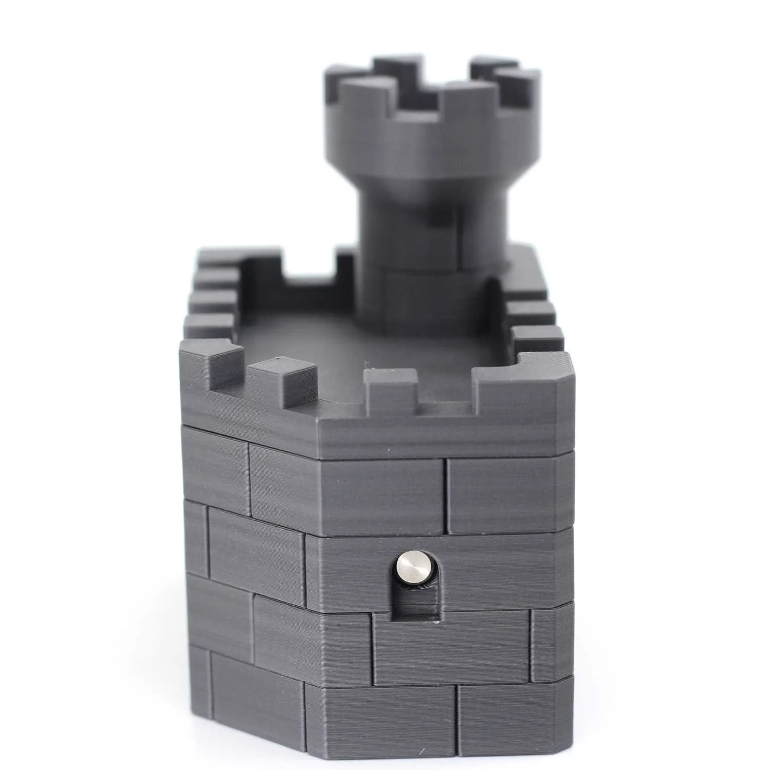 The idea for Fafnir’s Fortress originally came from an idea to make a puzzle in a sort of layer-cake design, where you have a number of blocks stacked on top of one another and you can remove (machine) portions of each layer to create various mechanisms. Naturally this began to resemble layers of bricks, and that led to the idea of a small castle-themed puzzle.