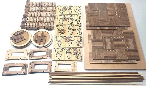 “I started the puzzle by designing and making the small parts. The rotating numbered elements, world map, clock face, decorative strips, screws were all meticulously made by hand on my circular saw.