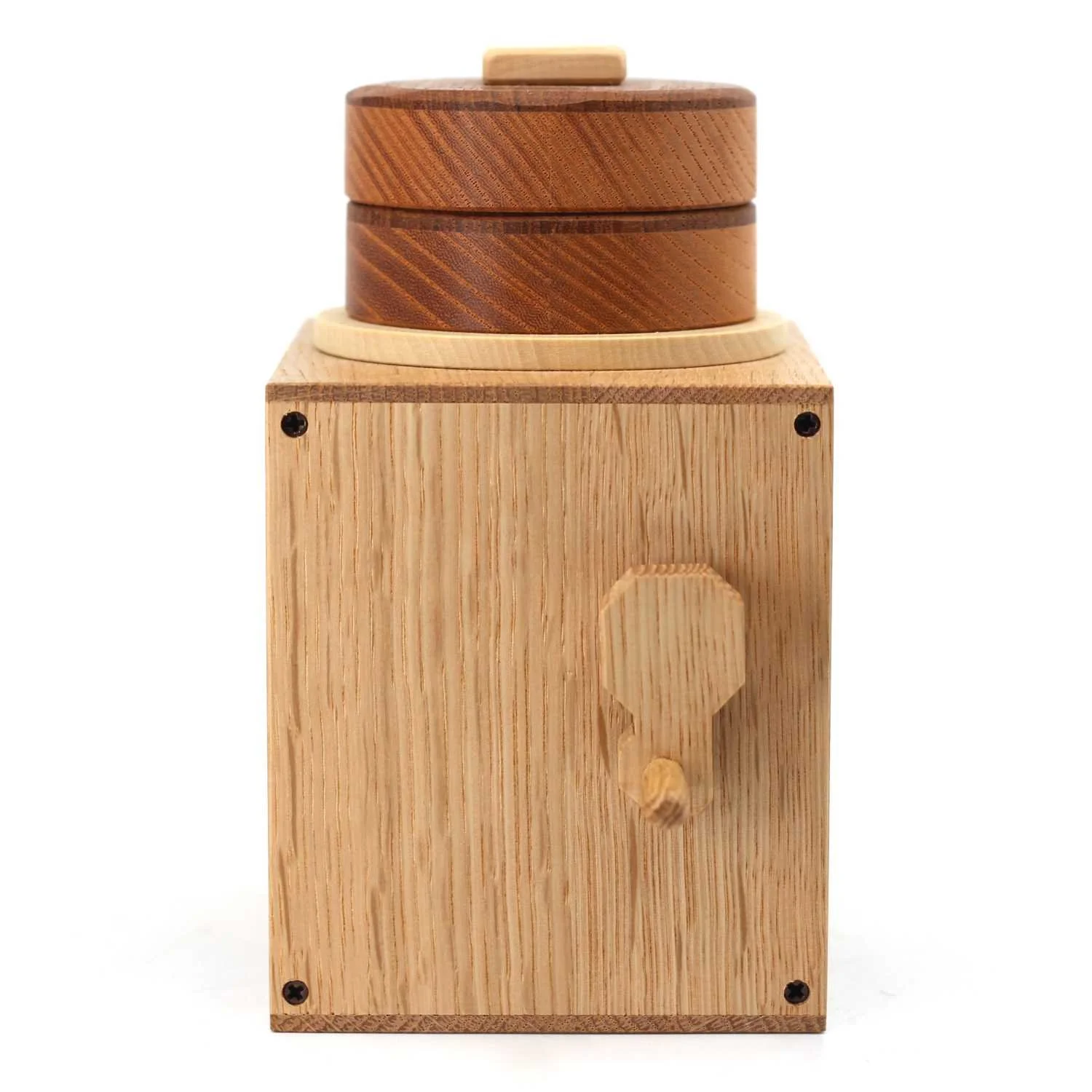 Pancake House is more overtly an automaton than some of Kakuda’s later automated puzzle box creations, in that there is even a handle and crank to turn, a common feature on such objects. Kakuda combines the automaton mechanics with the puzzle box opening seamlessness, so that the box literally solves itself. He has also crafted non-puzzle box automaton which are objects of pure whimsey. Perhaps the best hybrids are seen in his later works, which hide the automated movements with secret mechanisms that only reveal themselves once found, and which are integrated into the solution to opening the puzzle compartment. Pancake House was the beginning.