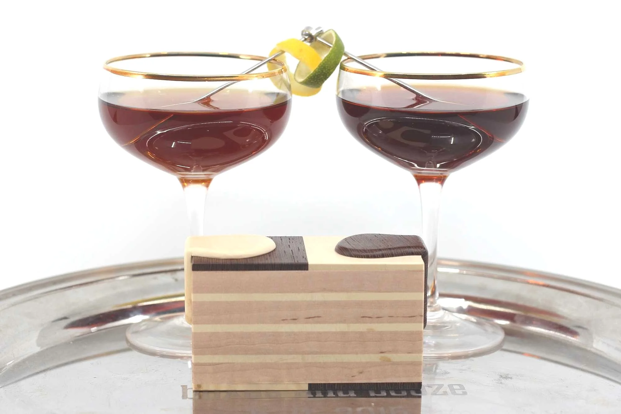 Here’s a toast to Wedlock, with similarly bespoke paired potions from San Francisco bartender and spirits writer Erik Ellestad. Erik embarked on his cocktail journey almost twenty years ago with an ambitious project, to make and make his way through every drink in the classic prohibition era Savoy Cocktail Book compiled by bar legend Harry Craddock. I’m also a fan of that book, which served as the inspiration for my own series of homage cocktails. Erik documented his journey, “Julie and Julia” style, on his blog Savoy Stomp.
